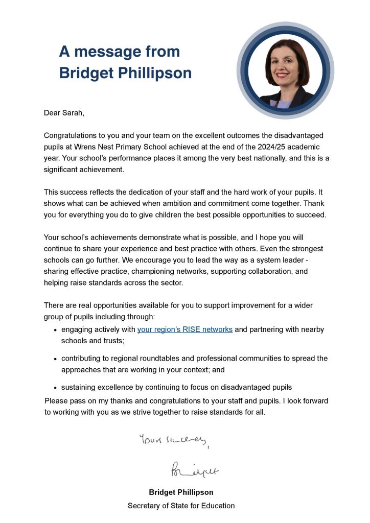 A letter to school from the Secretary of State for Education