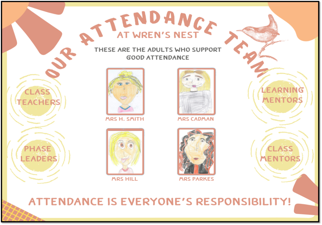 Wren’s Nest Primary School is proudly recognised as an Inclusive Attendance school. Our unwavering commitment to attendance centres around child-centric actions, evidence-informed practices, and a shared understanding of everyone’s roles and collective responsibilities to promote exceptional attendance.