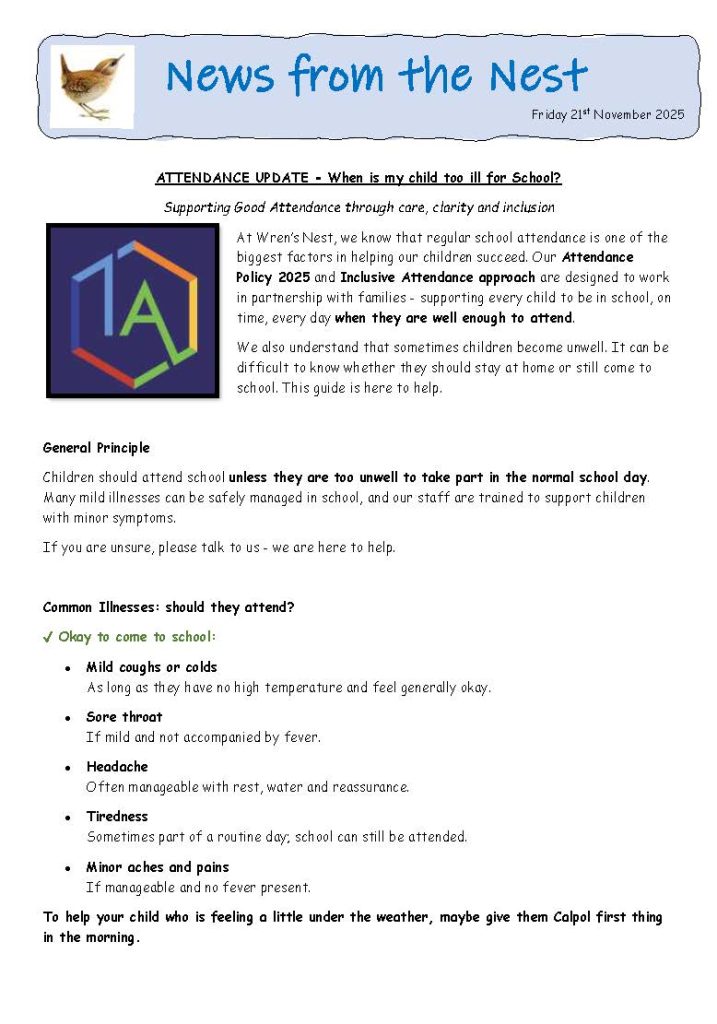 Wren’s Nest Primary School is proudly recognised as an Inclusive Attendance school. Our unwavering commitment to attendance centres around child-centric actions, evidence-informed practices, and a shared understanding of everyone’s roles and collective responsibilities to promote exceptional attendance.