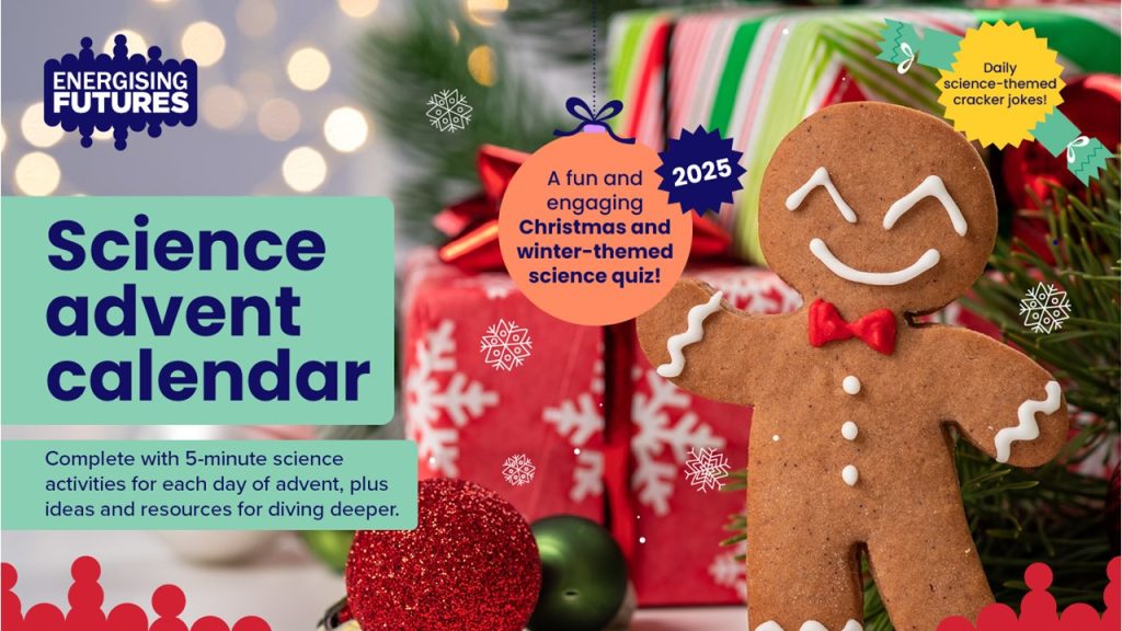 Click on the links below to download the Energising Futures Science advent calendars for 2025. The first one designed for ages 4-7 and the second is aimed at ages 7-11