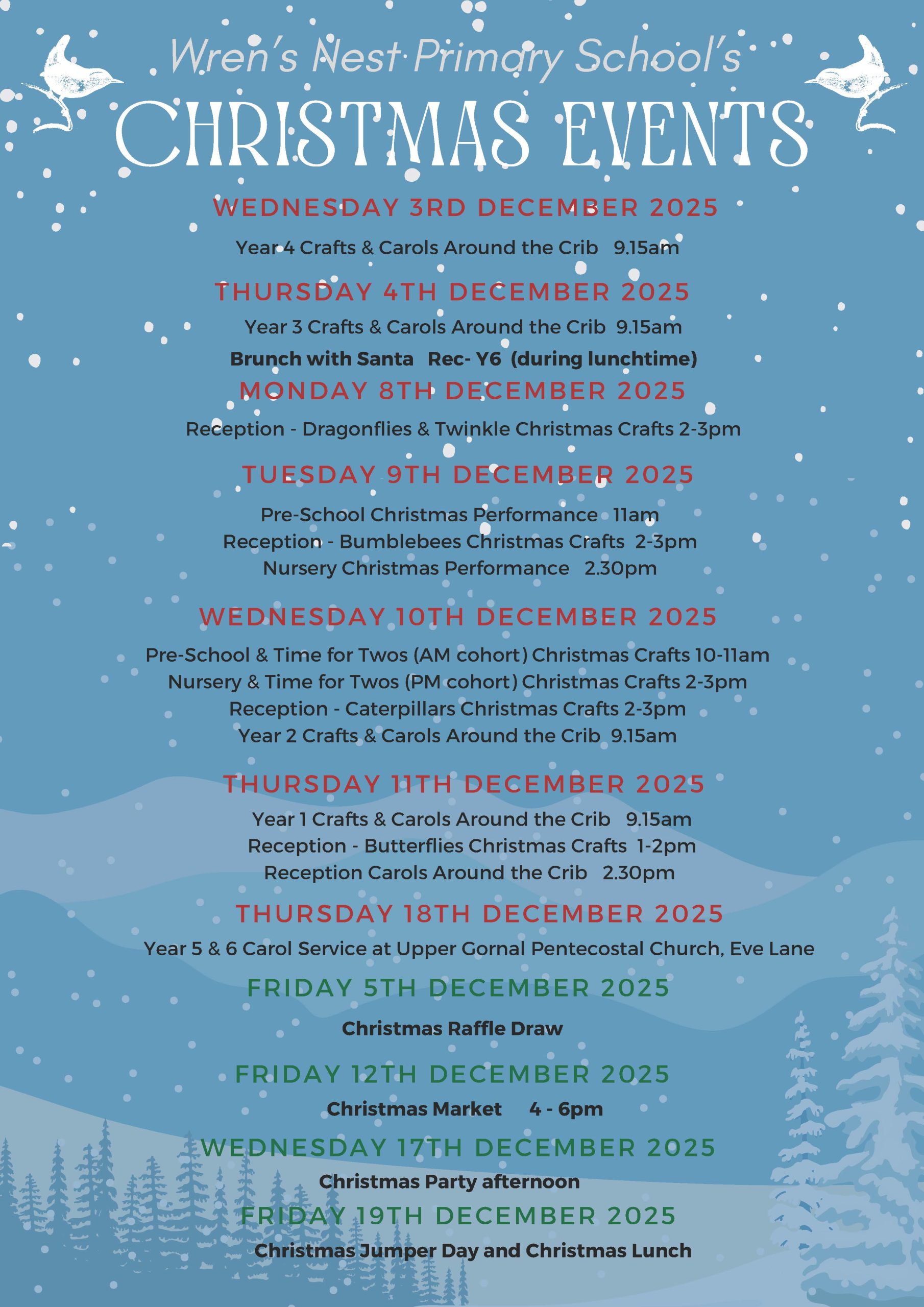 Reception Christmas Crafts will be taking place 1-2pm, rather that 2-3pm stated below