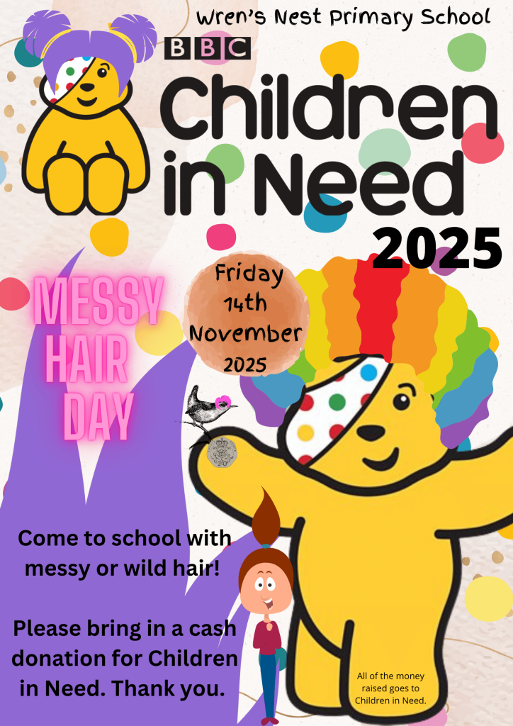 Thank you to everyone who took part in our Messy Hair Day for Children in Need on Friday 15th November. We raised an amazing £300 for the charity.